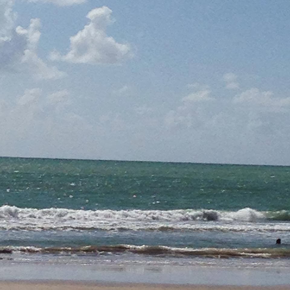 Ondas quebrando, espuma branquinha, areia fofa sob meus pés.